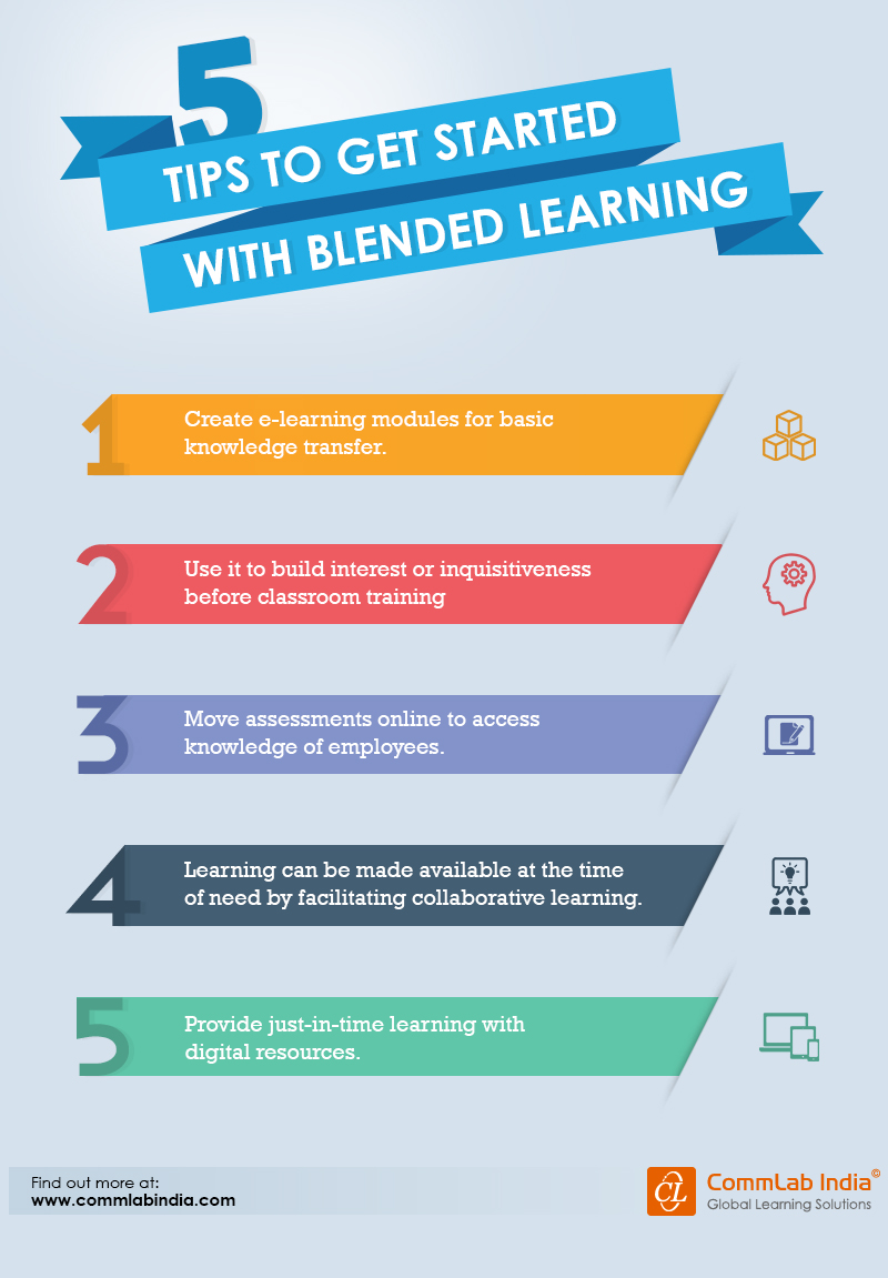 Well, listed in the infographic are 5 tips to help you get started with blended learning.