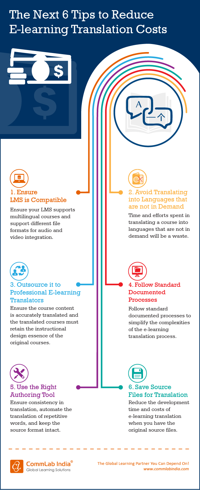 Here is an infographic on a few tips to reduce e-learning translation costs. Please check it out.