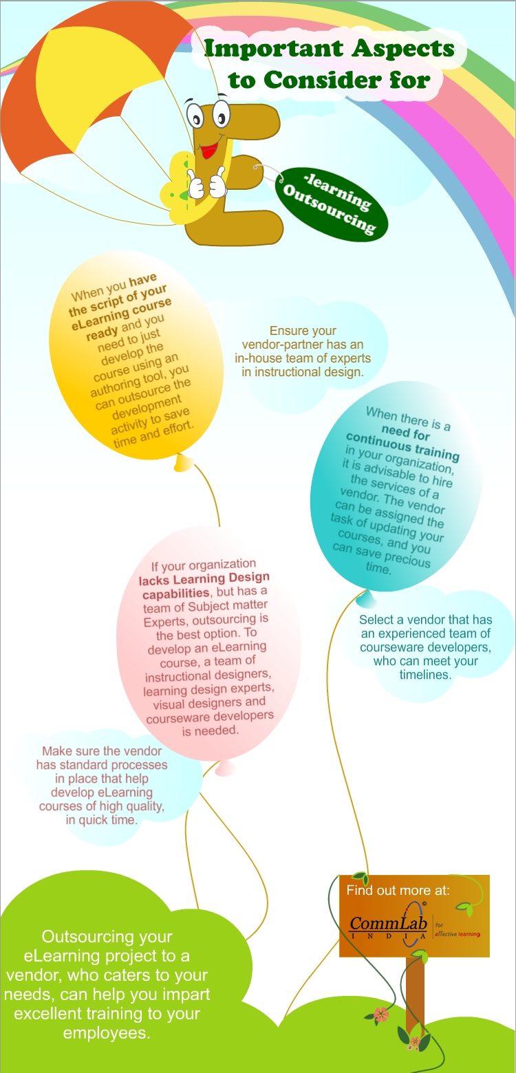 It is common knowledge that outsourcing of eLearning projects to overseas vendors results in considerable reduction in the time taken for and cost of online course development. But, it is important to keep certain aspects in mind when you outsource the development of your eLearning course. Let us see what they are and why they are important.